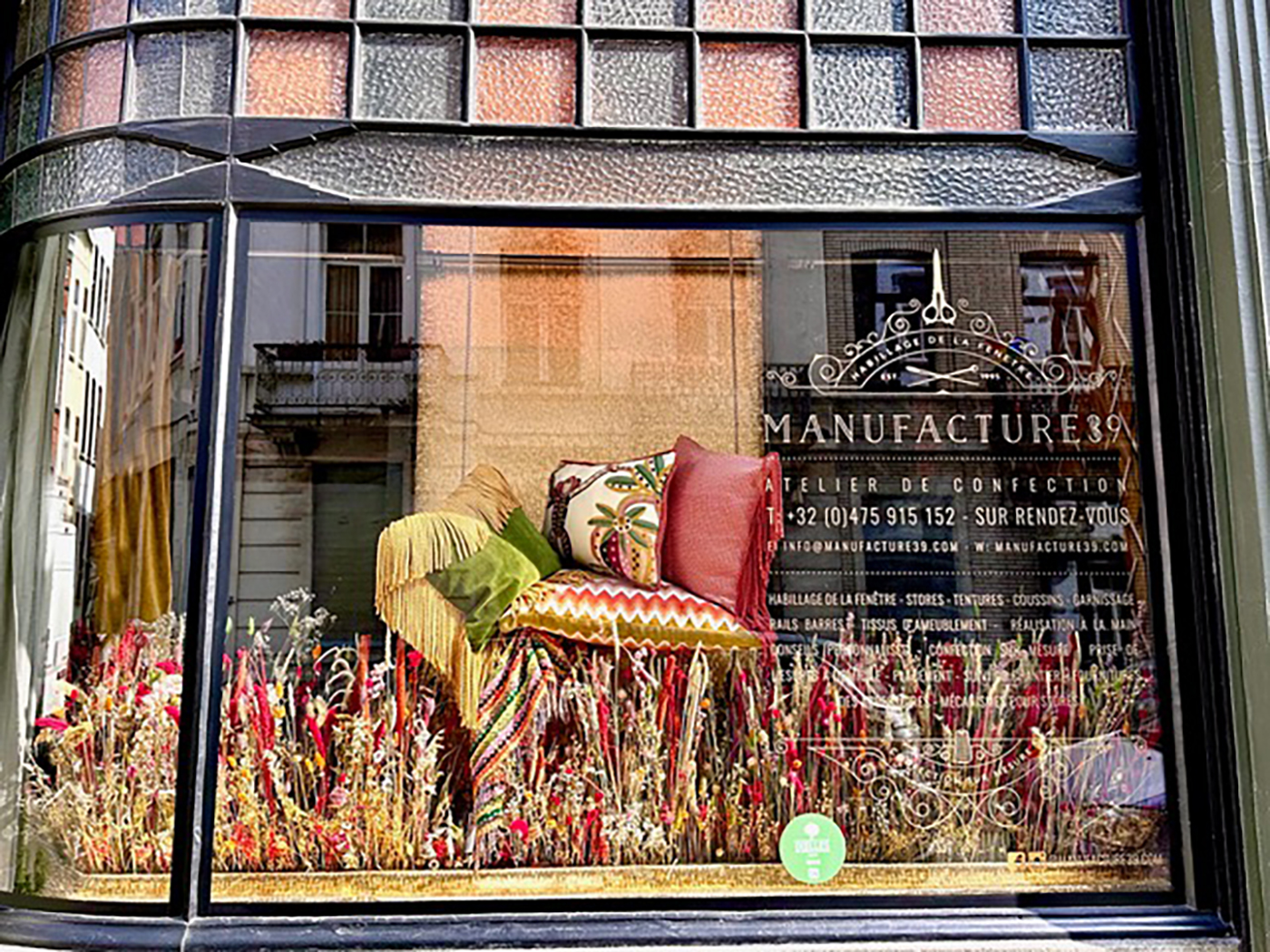 Habillage de la fenêtre – stores – tentures – coussins – garnissage – rails / barrestissus d’ameublementréalisation à la mainconseils personnalisésconfection sur mesureprises de mesures à domicile – placement – suivi de chantierfourniture des accessoiresmécanismes pour stores – papier-peint